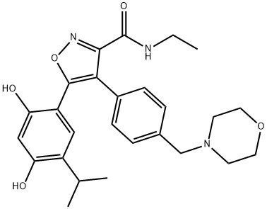 英文名稱(chēng):5-[2,4-Dihydroxy-5-isopropylphenyl]-N-ethyl-4-[4-(4-morpholinylmethyl)phenyl]-3-isoxazolecarboxamide CAS號(hào):747412-49-3 分子式:C26H31N3O5 分子量:465.54