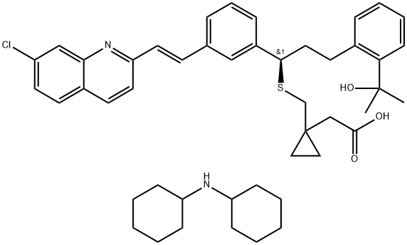 英文名稱:Montelukast Dicyclohexylamine Salt CAS號:577953-88-9 分子式:C47H59ClN2O3S 分子量:767.51